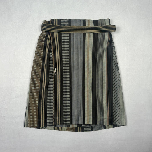 FW18 Stripe Patchwork Midi Pleated Skirt