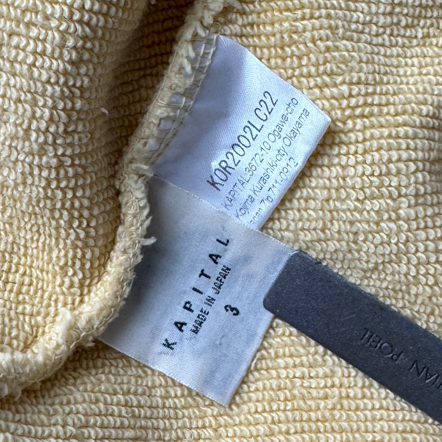 7/10 — Light marks and minor pilling. Natural fading consistent with Kapital’s intended washed finish and age. No rips or holes. Soft texture and full wearability retained.