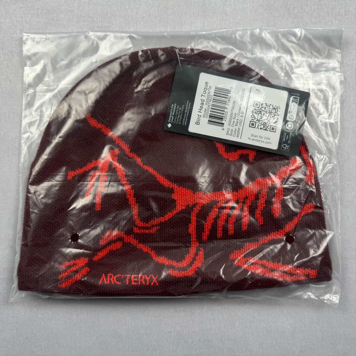 - Arc'teryx Bird Head Toque featuring the signature Archaeopteryx skeleton graphic knit across the crown.