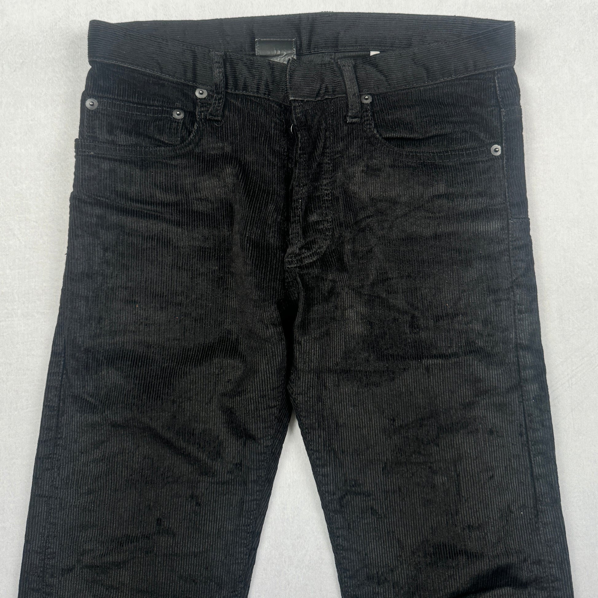 - Five-pocket construction with tonal stitching and blackened metal hardware.